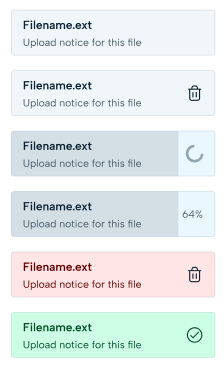 - Success: used where a file has either been in a spinner or progress state and is now completed and ready for upload.