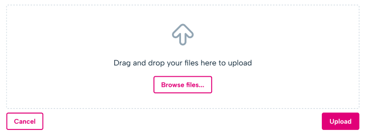 - The file uploader modal appears centred on the screen, overlaying the current page content.
